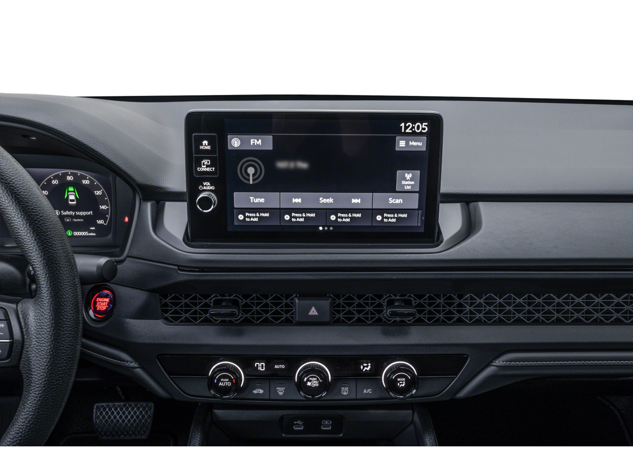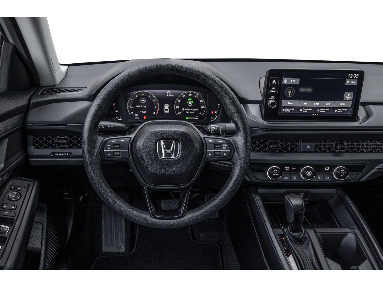 4 Speakers, 4-Wheel Disc Brakes, ABS brakes, Adaptive Cruise Control: Adaptive Cruise Control (ACC) with Low-Speed Follow, Air Conditioning, Alloy wheels, AM/FM radio, Apple CarPlay/Android Auto, Auto High-beam Headlights, Automatic temperature control, Brake assist, Bumpers: body-color, Compass, Delay-off headlights, Driver door bin, Driver vanity mirror, Dual front impact airbags, Dual front side impact airbags, Electronic Stability Control, Emergency communication system: HondaLink, Exterior Parking Camera Rear, Fabric Seat Trim, Four wheel independent suspension, Front anti-roll bar, Front Bucket Seats, Front Center Armrest, Front reading lights, Fully automatic headlights, Illuminated entry, Knee airbag, Lane departure: Lane Keeping Assist System (LKAS) active, Low tire pressure warning, Occupant sensing airbag, Outside temperature display, Overhead airbag, Overhead console, Panic alarm, Passenger door bin, Passenger vanity mirror, Power door mirrors, Power steering, Power windows, Radio data system, Radio: 160-Watt Audio System, Rear anti-roll bar, Rear reading lights, Rear seat center armrest, Rear side impact airbag, Rear window defroster, Remote keyless entry, Security system, Speed control, Speed-sensing steering, Speed-Sensitive Wipers, Steering wheel mounted audio controls, Tachometer, Telescoping steering wheel, Tilt steering wheel, Traction control, Trip computer, Variably intermittent wipers, and Wheels: 17" x 7.5J Blade Silver.