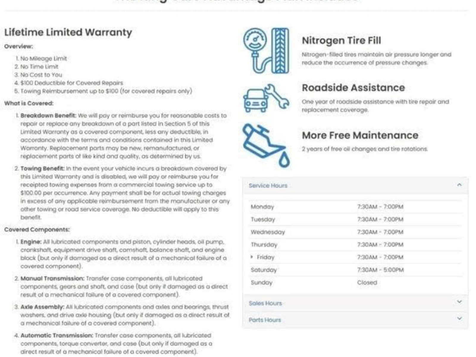 - Maintenance Warranty: 12 months / 12,000 miles