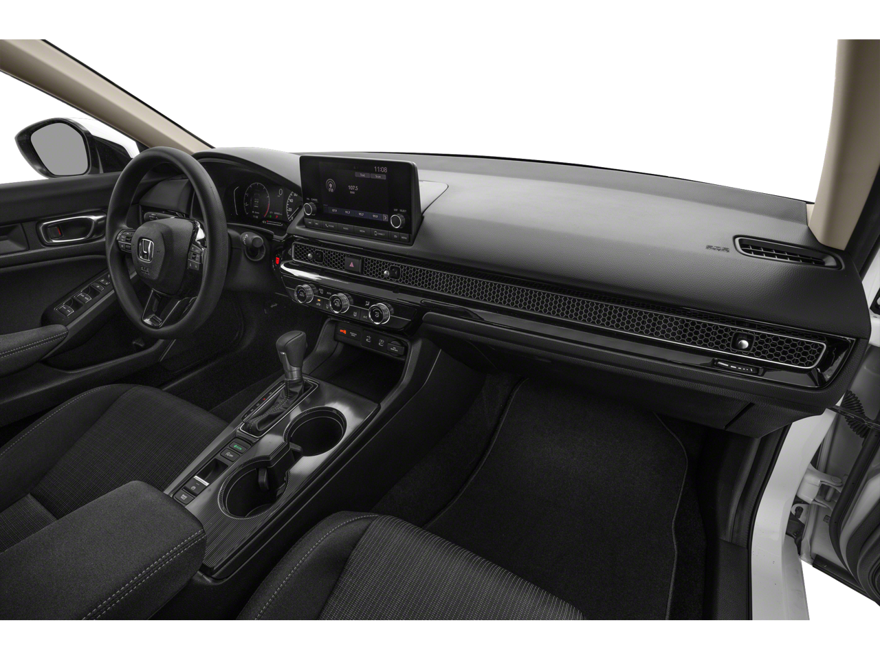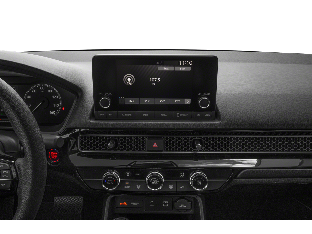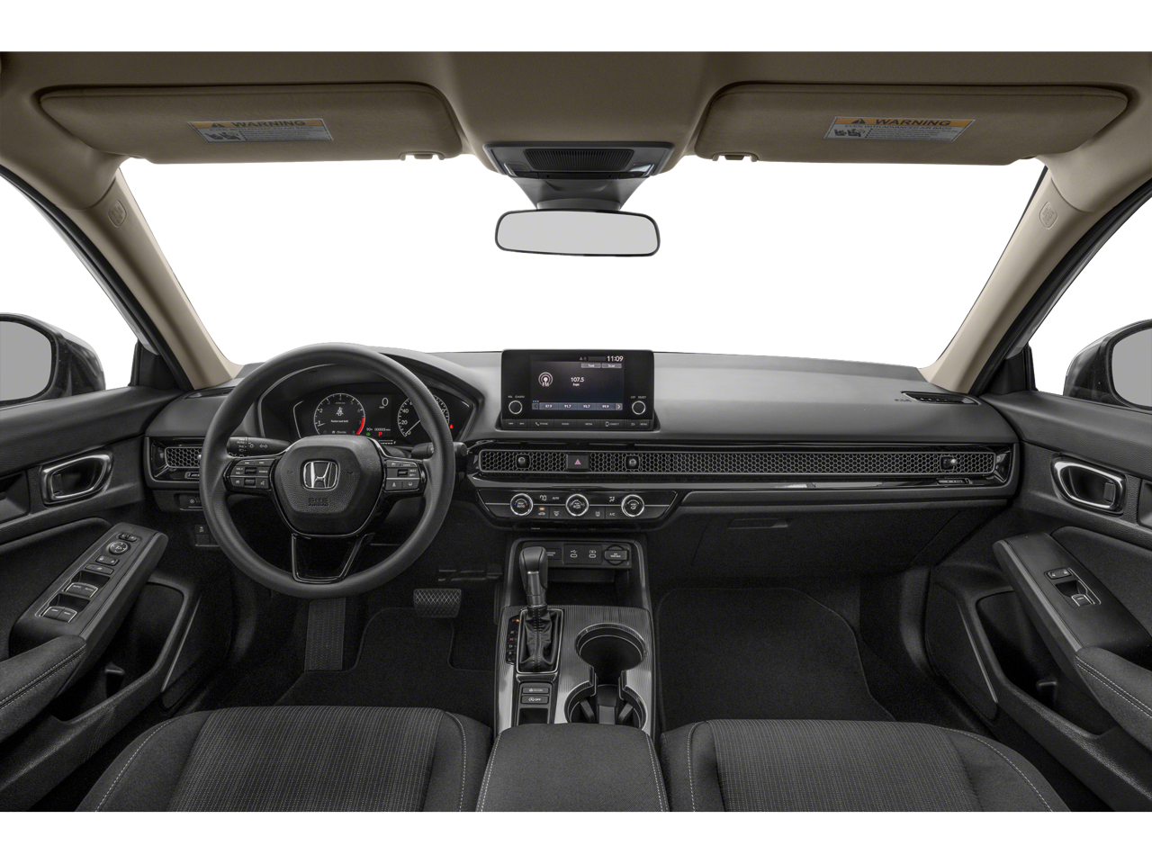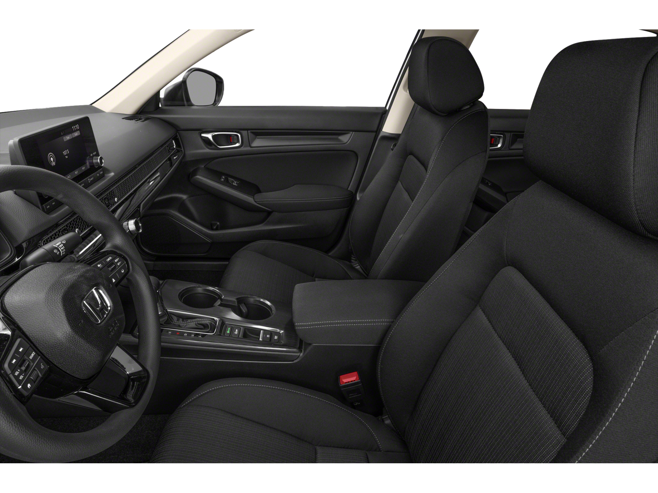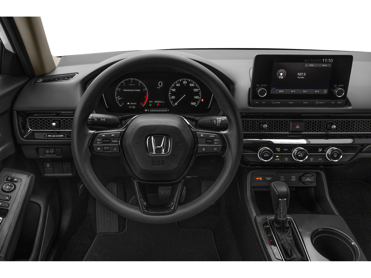 4 Speakers, 4-Wheel Disc Brakes, ABS brakes, Adaptive Cruise Control: Adaptive Cruise Control (ACC) with Low-Speed Follow, Air Conditioning, AM/FM radio, Apple CarPlay/Android Auto, Auto High-beam Headlights, Automatic temperature control, Brake assist, Bumpers: body-color, Cloth Seating Surfaces, Delay-off headlights, Driver door bin, Driver vanity mirror, Dual front impact airbags, Dual front side impact airbags, Electronic Stability Control, Emergency communication system: HondaLink, Exterior Parking Camera Rear, Four wheel independent suspension, Front anti-roll bar, Front Bucket Seats, Front Center Armrest, Front reading lights, Fully automatic headlights, Illuminated entry, Knee airbag, Low tire pressure warning, Occupant sensing airbag, Outside temperature display, Overhead airbag, Panic alarm, Passenger door bin, Passenger vanity mirror, Power door mirrors, Power steering, Power windows, Radio data system, Radio: 160-Watt Audio System, Rear anti-roll bar, Rear side impact airbag, Rear window defroster, Remote keyless entry, Security system, Speed control, Speed-sensing steering, Steering wheel mounted audio controls, Tachometer, Telescoping steering wheel, Tilt steering wheel, Traction control, Trip computer, and Wheels: 16" with Full Covers.