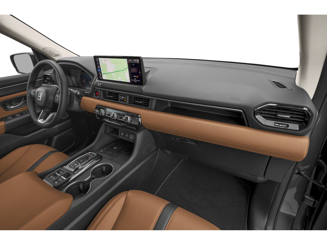 12 Speakers, 3rd row seats: split-bench, 4-Wheel Disc Brakes, ABS brakes, Adaptive Cruise Control: Adaptive Cruise Control (ACC) with Low-Speed Follow, Air Conditioning, Alloy wheels, Apple CarPlay/Android Auto, Auto High-beam Headlights, Auto-dimming Rear-View mirror, Automatic temperature control, Blind Spot Information (BSI) System warning, Bose Premium Sound System, Brake assist, Bumpers: body-color, Compass, Delay-off headlights, Driver door bin, Driver vanity mirror, Dual front impact airbags, Dual front side impact airbags, Electronic Stability Control, Emergency communication system: HondaLink, Exterior Parking Camera Rear, Four wheel independent suspension, Front anti-roll bar, Front Bucket Seats, Front Center Armrest, Front dual zone A/C, Front fog lights, Front reading lights, Fully automatic headlights, Garage door transmitter: HomeLink, Heated door mirrors, Heated Front Bucket Seats, Heated front seats, HondaLink, HondaLink Subscription Services, Illuminated entry, Knee airbag, Lane departure: Lane Keeping Assist System (LKAS) active, Leather-Trimmed Seat Trim, Low tire pressure warning, Memory seat, Navigation system: Google Maps, Occupant sensing airbag, Outside temperature display, Overhead airbag, Overhead console, Panic alarm, Passenger door bin, Passenger vanity mirror, Power door mirrors, Power driver seat, Power Liftgate, Power moonroof, Power passenger seat, Power steering, Power windows, Radio data system, Rear air conditioning, Rear anti-roll bar, Rear reading lights, Rear seat center armrest, Rear window defroster, Rear window wiper, Reclining 3rd row seat, Remote keyless entry, Security system, Speed control, Speed-sensing steering, Speed-Sensitive Wipers, Split folding rear seat, Spoiler, Steering wheel mounted audio controls, Tachometer, Telescoping steering wheel, Tilt steering wheel, Traction control, Trip computer, Turn signal indicator mirrors, Variably intermittent wipers, and Wheels: 20" Black with Black Lug Nuts.